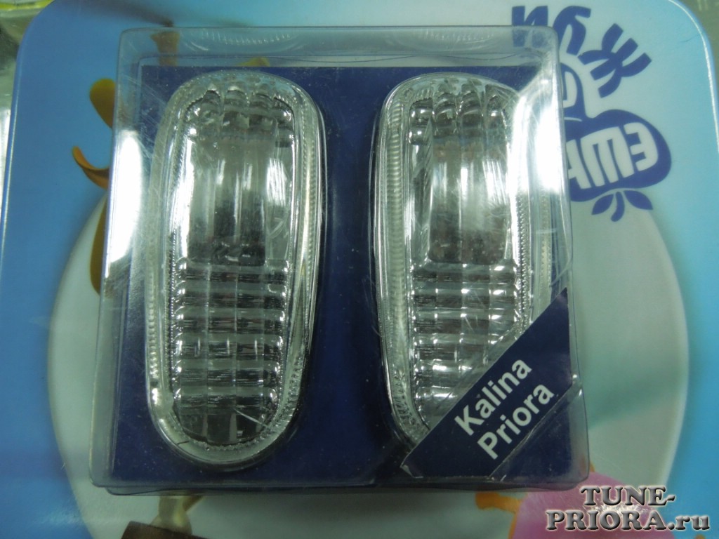 Решил заменить на приоре штатные жёлтые повторители поворота на симпатичные хрусталики.